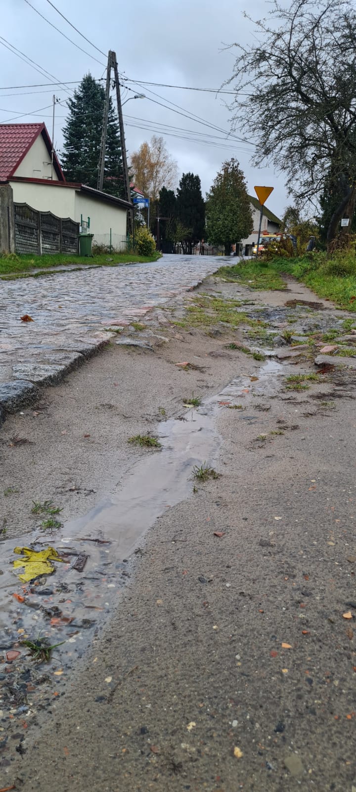 Ulica Wędrowna oraz jej odnogi komunikacyjne (ulice: Wyjątkowa, Przy Strumyku, Jastrzębia, Kameralna, Sekretna, Małej Łąki) zamieszkiwane są przez kilkaset mieszkańców. Stan drogi jest krytyczny. Codzienne poruszanie się nią to dramat komunikacyjny mieszkańców. W najgorszym stanie jest odcinek bruku – z uwagi na to, że droga jest wąska i stale obciążana przez pojazdy w tych samych miejscach – przyjęła kształt garbu. Pobocza są urwiskami. Dwa pojazdy nie są w stanie minąć się bez zjeżdżania na pobocze, którym poruszają się także piesi i rowerzyści (brak chodnika). Dziury w nawierzchni są tak głębokie, że można tam złamać sobie nogę albo uszkodzić pojazd. Oświetlenie występuje tylko na pierwszym odcinku około 100 metrów od ul. Pyrzyckiej, ale jest przestarzałe i nie spełnia swojej roli. Dalsza część ulicy jest nieoświetlona. Dalsze poruszanie się drogą w takim stanie może zakończyć się wypadkiem. Załączam aktualne zdjęcia.