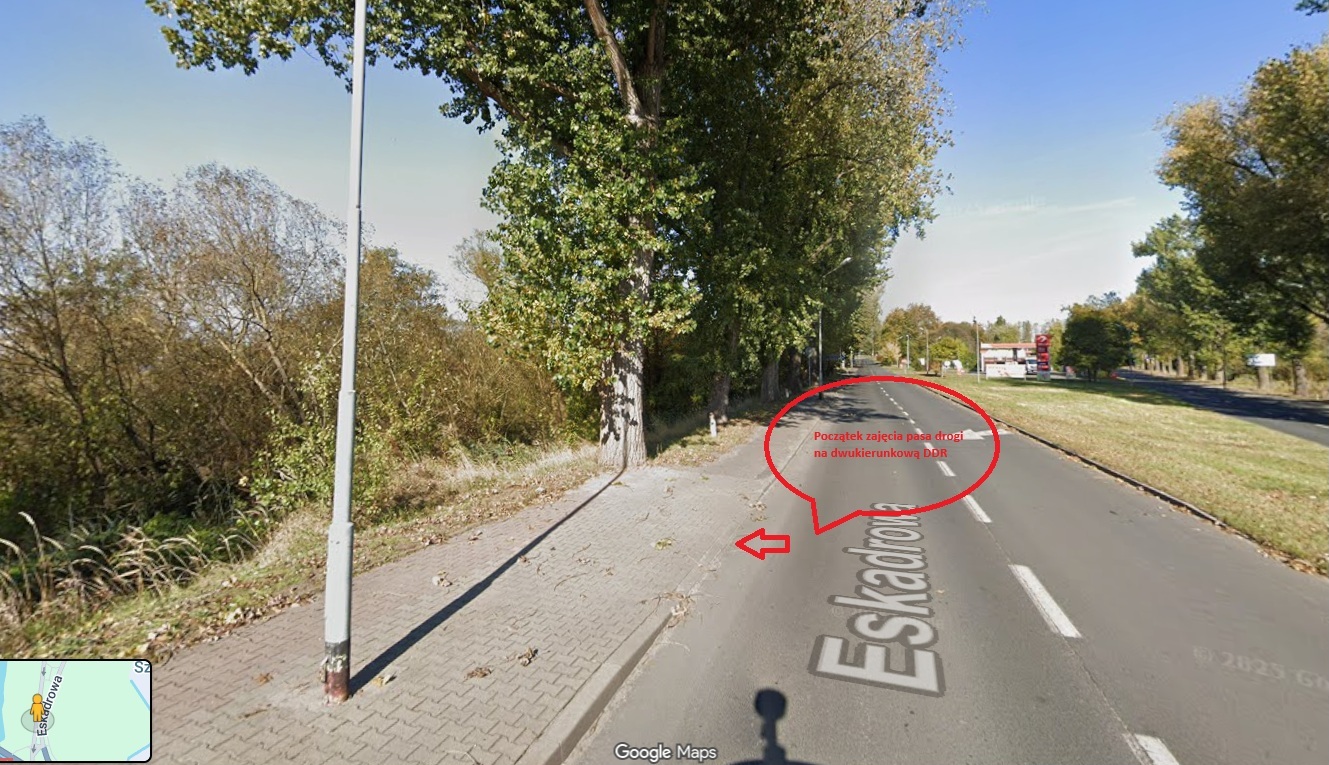 Interpelacja dotyczy odcinka ul. Eskadrowej, który stanowi niebezpieczną przerwę pomiędzy ciągami pieszo - rowerowymi: