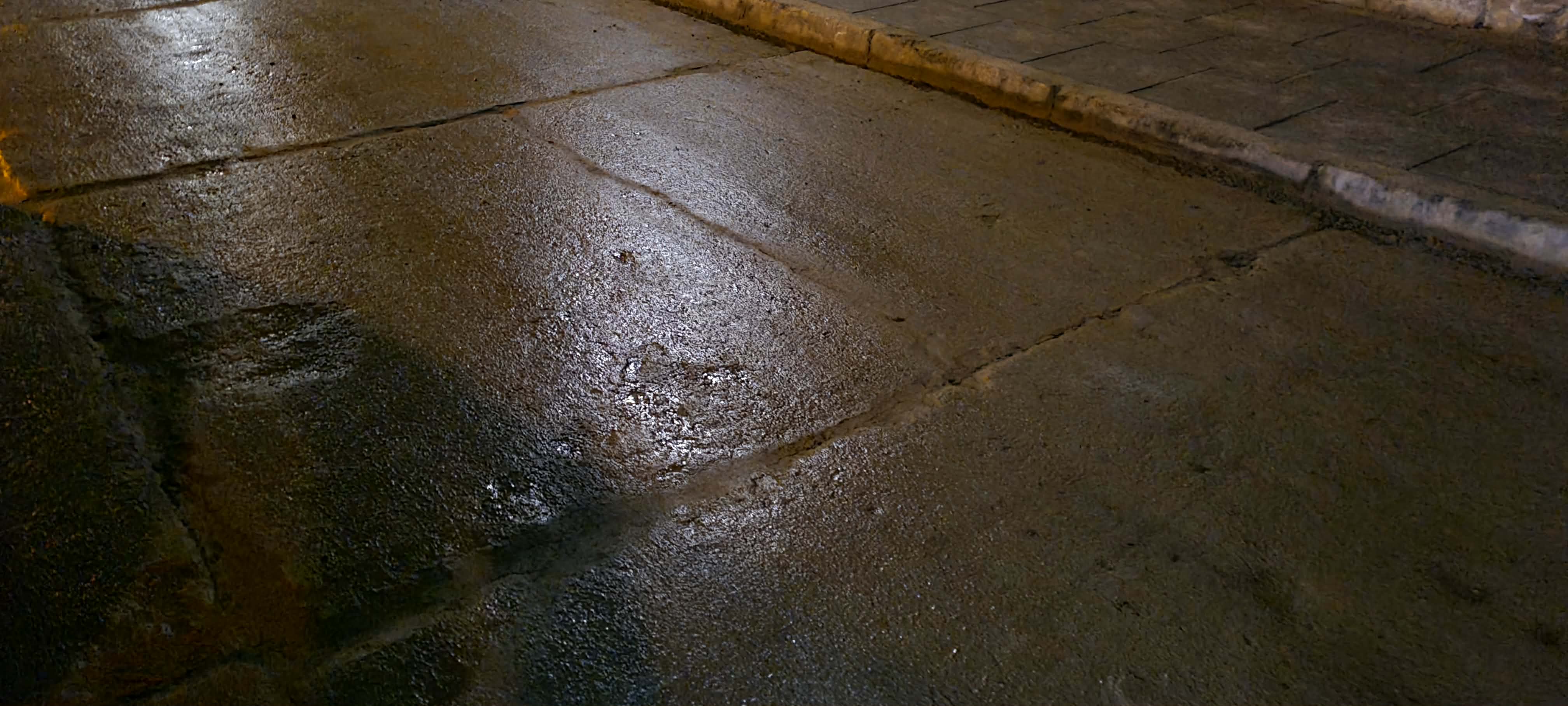 Z dokumentacji fotograficznej przekazanej przez mieszkańców oraz z wcześniejszego pisma z dnia 09.12.2025 r. wynika, że nawierzchnia: została odtworzona z płyt żelbetowych z 1972 r., posiada liczne pęknięcia, wyszczerbienia i ubytki, wykazuje nierówności powodujące uskoki między płytami, ale przede wszystkim nie zapewnia prawidłowego spływu wód opadowych do wpustów kanalizacji deszczowej.