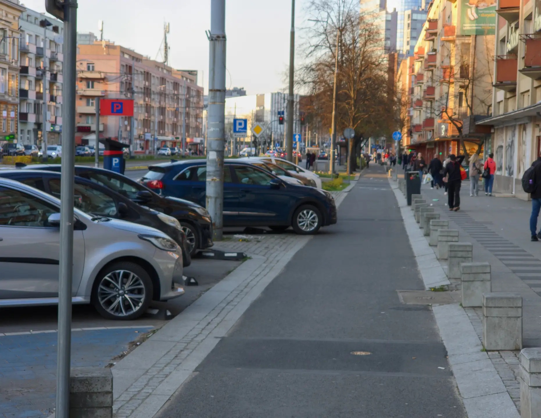 zwracam się do Pana w związku z sygnałami kierowanymi do mnie przez mieszkańców Szczecina, dotyczącymi nagminnego blokowania drogi rowerowej przez pojazdy parkujące w bezpośrednim jej sąsiedztwie. Problem dotyczy miejsca widocznego na załączonej fotografii, (DDR na al. Wyzwolenia, od pl. Żołnierza Polskiego w stronę pl. Rodła) gdzie brak fizycznych separatorów pomiędzy pasem parkingowym a drogą rowerową sprawia, że kierowcy zajmują przestrzeń przeznaczoną dla rowerzystów.