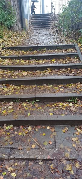 4. Chodniki od kładki przy ul. Budziszyńskiej 26 do Budziszyńskiej 25 – mieszkanka informuje, że na chodnikach w tym rejonie od dłuższego czasu zalegają liście, przez co nawierzchnia jest śliska i niebezpieczna. Zaznacza przy tym, że tereny te należą do miasta i że wielokrotnie wcześniej zgłaszała problem odpowiednim służbom.