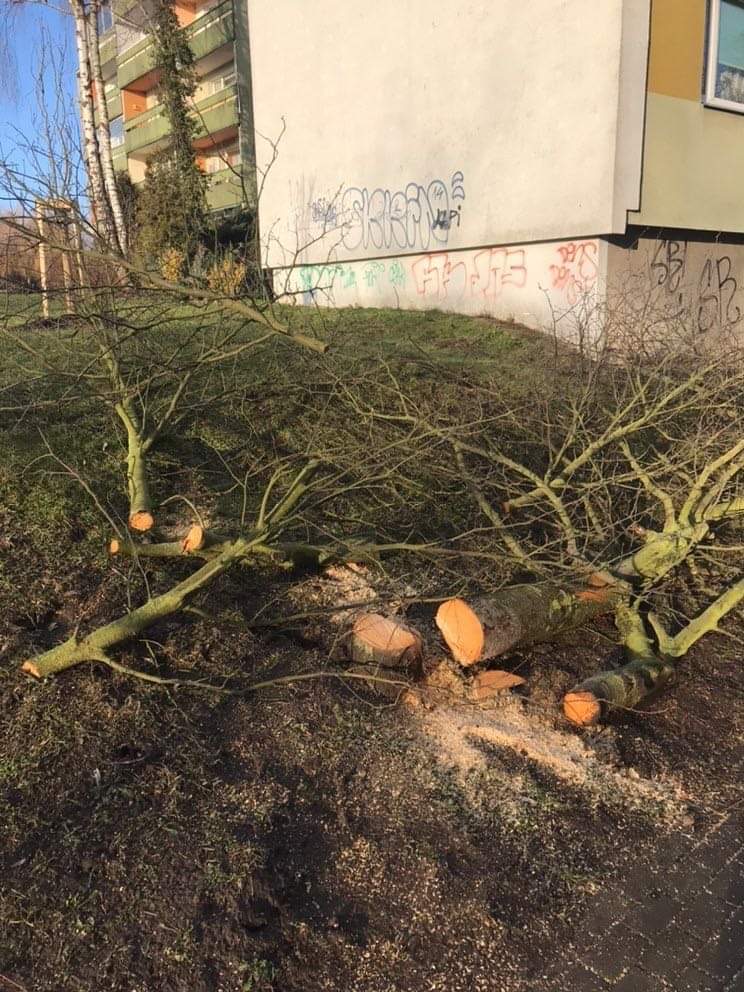 jak zgłaszają mieszkańcy, w zeszłym tygodniu doszło do wycinki drzew przy ul. Kormoranów. Załączam zdjęcia. Wycinka miała miejsce na terenie spółdzielni mieszkaniowej. W związku z powyższym proszę o odpowiedź na poniższe pytania: