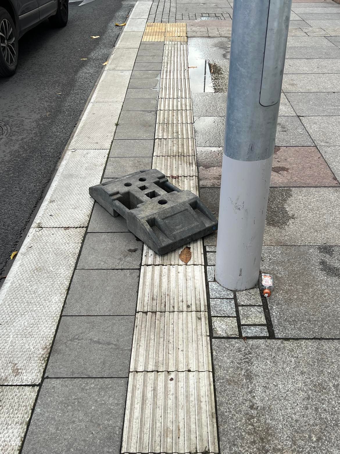 przebudowa pl. Rodła już jakiś czas temu dobiegła końca. Mimo to do dzisiaj nie zostały uprzątnięte podstawy od znaków drogowych. Co więcej podstawy są rozmieszczone na liniach doprowadzających dla osób niewidomych. Takie bariery są zagrożeniem dla życia i zdrowia, nie tylko osób niewidomych, ale każdego kto może takiej przeszkody nie zauważyć. Co więcej, akurat pl. Rodła i ul. Piłsudskiego są w bezpośrednim sąsiedztwie siedziby szczecińskiego oddziału Polskiego Związku Osób Niewidomych, więc tym bardziej służby miejskie i urzędnicy powinni być wyczuleni na usuwanie barier z przestrzeni pieszych. Dlaczego pomimo wielu tygodni od usunięcia znaków dotyczących tymczasowej organizacji ruchu, podstawy nie zostały usunięte? Czy ktokolwiek dokonał odbioru pod kątem usunięcia barier z chodników?