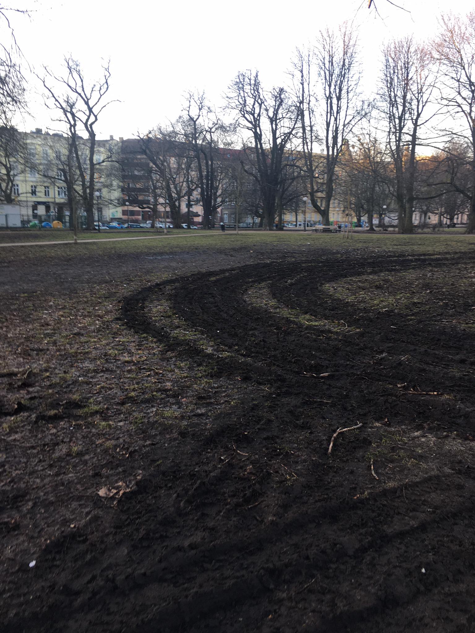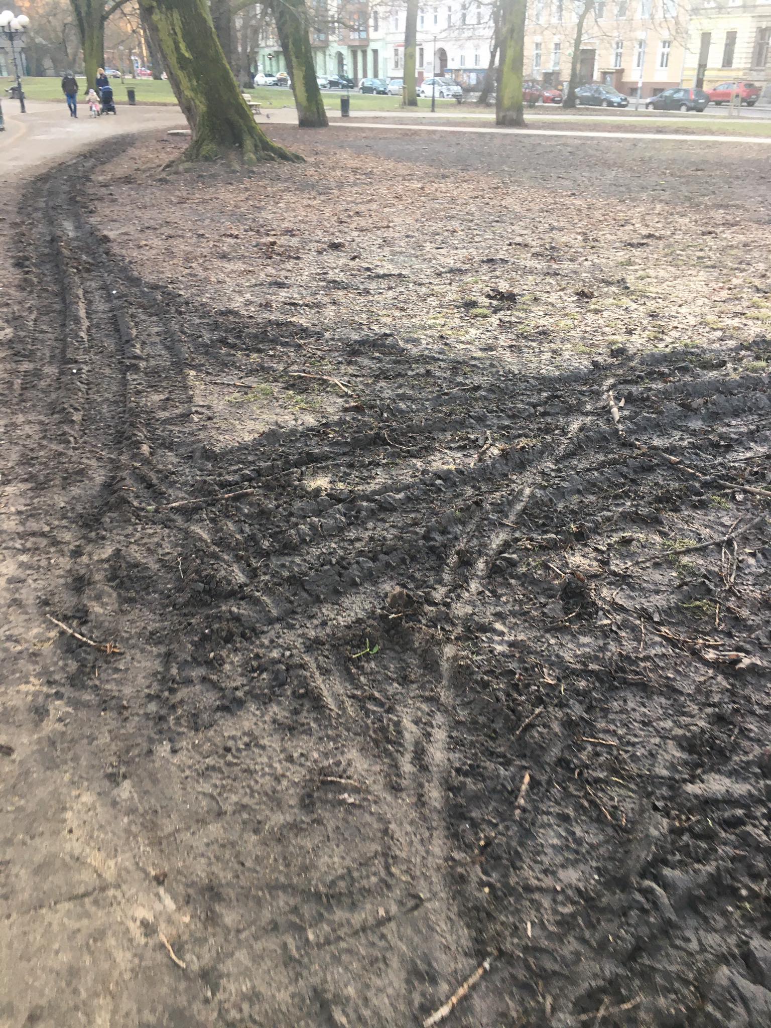 działając na wniosek mieszkańców, przekazuję zdjęcia z ostatniego weekendu, z Parku Andersa. Tereny zielone i alejki parku zostały zdewastowane przez samochody. Można przypuszczać, że dokonały tego pojazdy służb odpowiedzialnych za utrzymanie parku. To nie pierwszy raz kiedy dochodzi do nieprawidłowości na terenie Parku Andersa. W 2019 roku pracownicy firmy Thomas nie tylko rozjeżdżali alejki ale również myli swój pojazd na terenie parku.