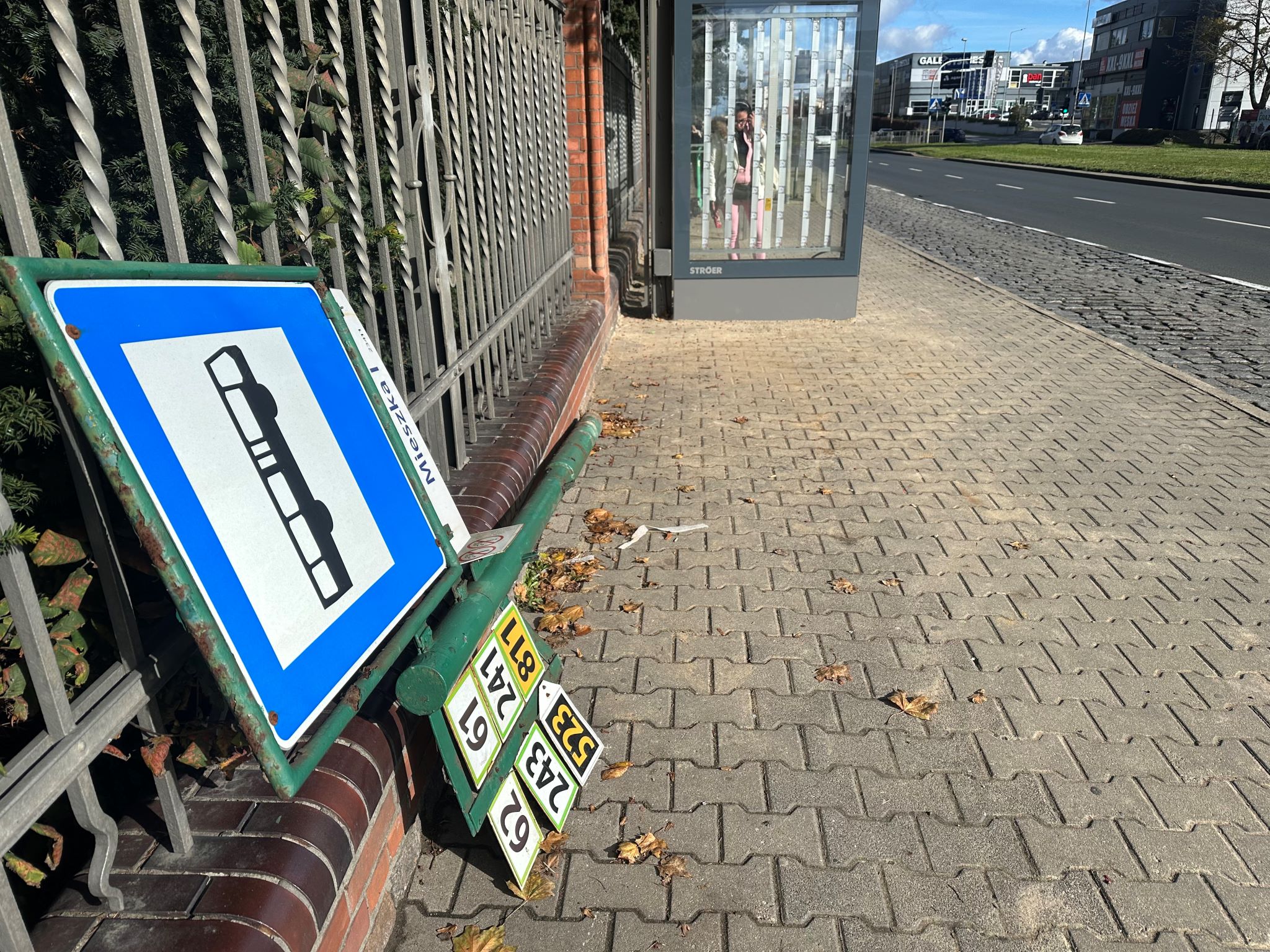 Na chodniku w bezpośrednim sąsiedztwie przystanku od dłuższego czasu leży zdemontowany słup przystankowy wraz z tabliczkami informacyjnymi z numerami linii. Słup ten – jak wynika z relacji mieszkańców – został pozostawiony po remoncie przystanku, który przeprowadzono stosunkowo niedawno. Od tamtej pory nie został ponownie zamontowany ani usunięty, co wpływa na porządek i estetykę w tym miejscu, a dodatkowo nie pełni swojej roli informacyjnej. Ponadto może stanowić utrudnienie dla pieszych korzystających z chodnika, zwłaszcza osób starszych. Dziś znajduje się przy ogrodzeniu cmentarza, natomiast mogą znaleźć się osoby, które przeniosą go np. na środek drogi.