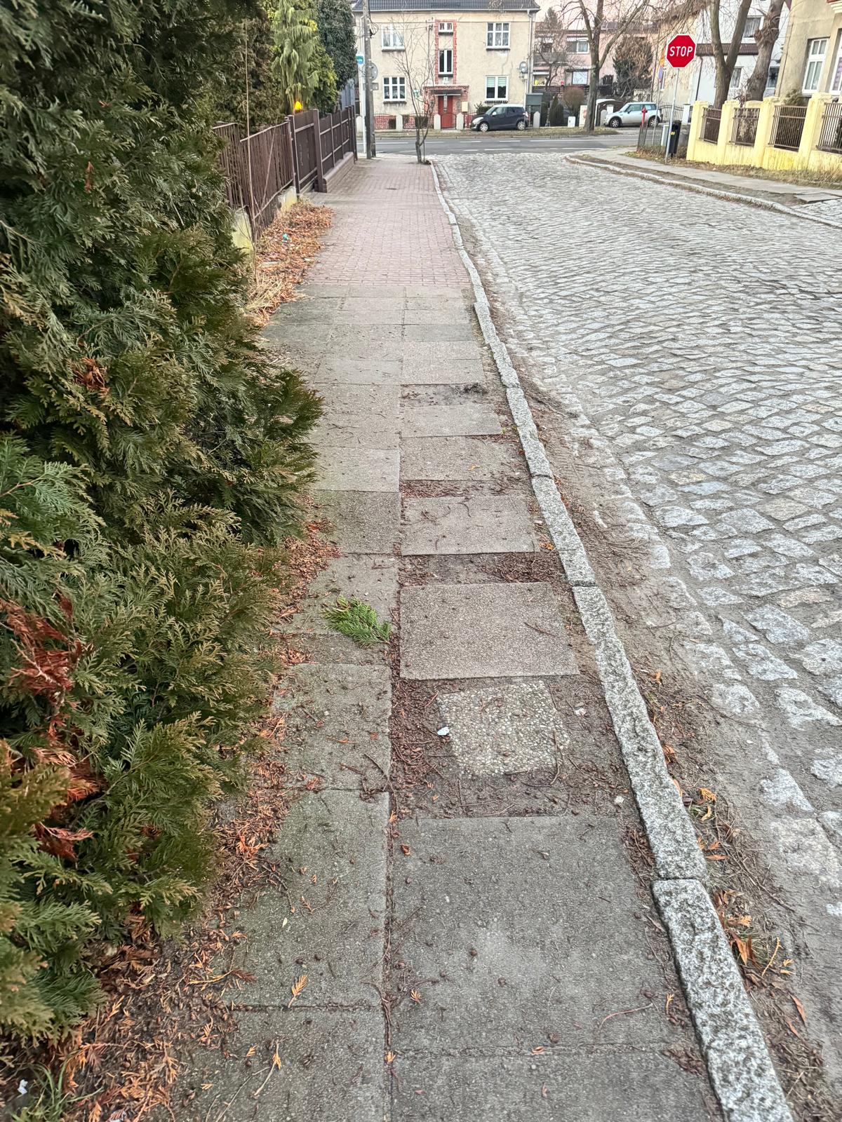 uprzejmie proszę o podjęcie działań związanych z naprawą drobnych, lecz uciążliwych uszkodzeń chodnika przy ul. Kostrzyńskiej. W szczególności chodzi o wymianę uszkodzonych płyt chodnikowych oraz uzupełnienie brakujących fragmentów w miejscu, gdzie płyty nie zostały w ogóle zamontowane.