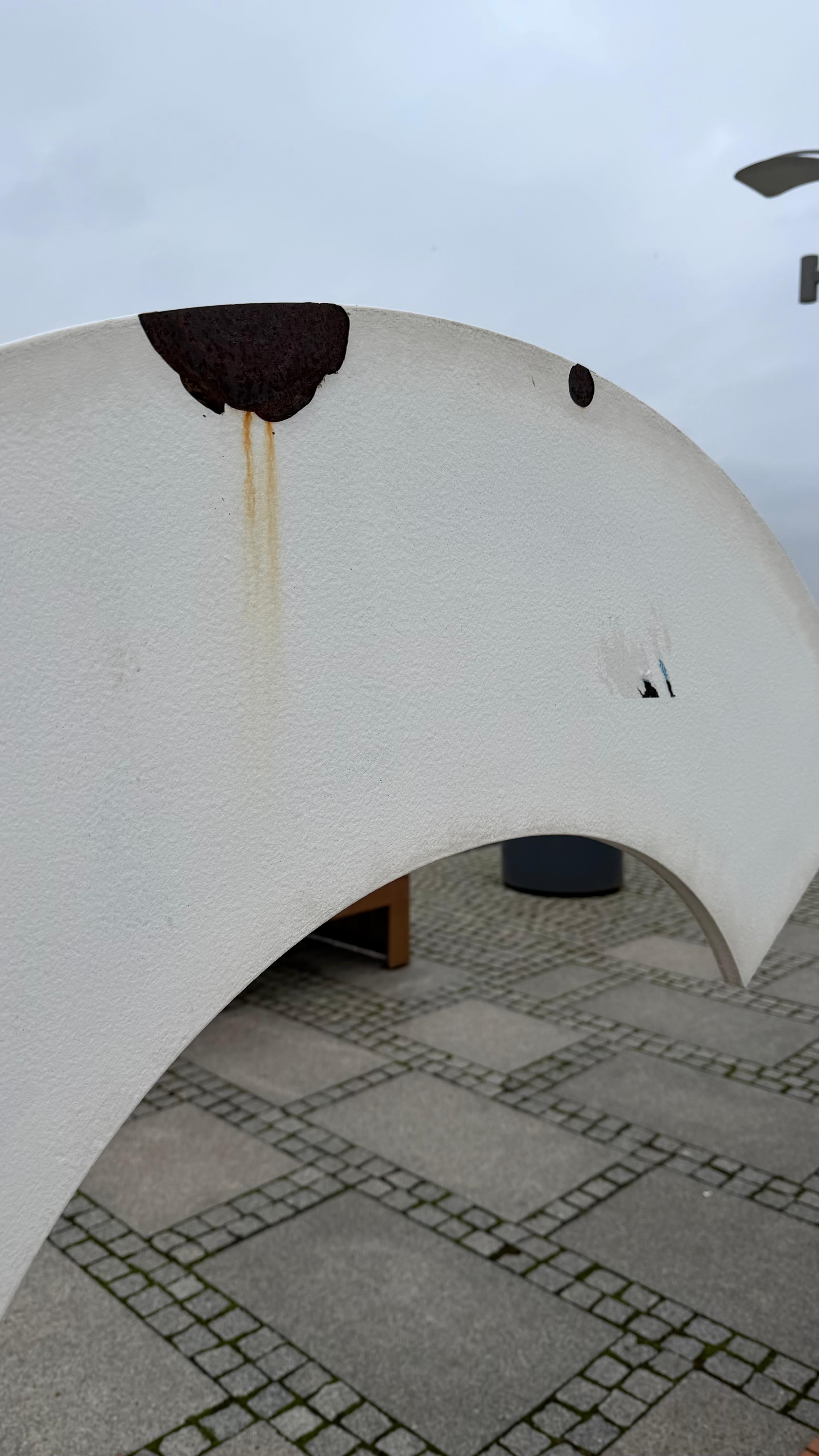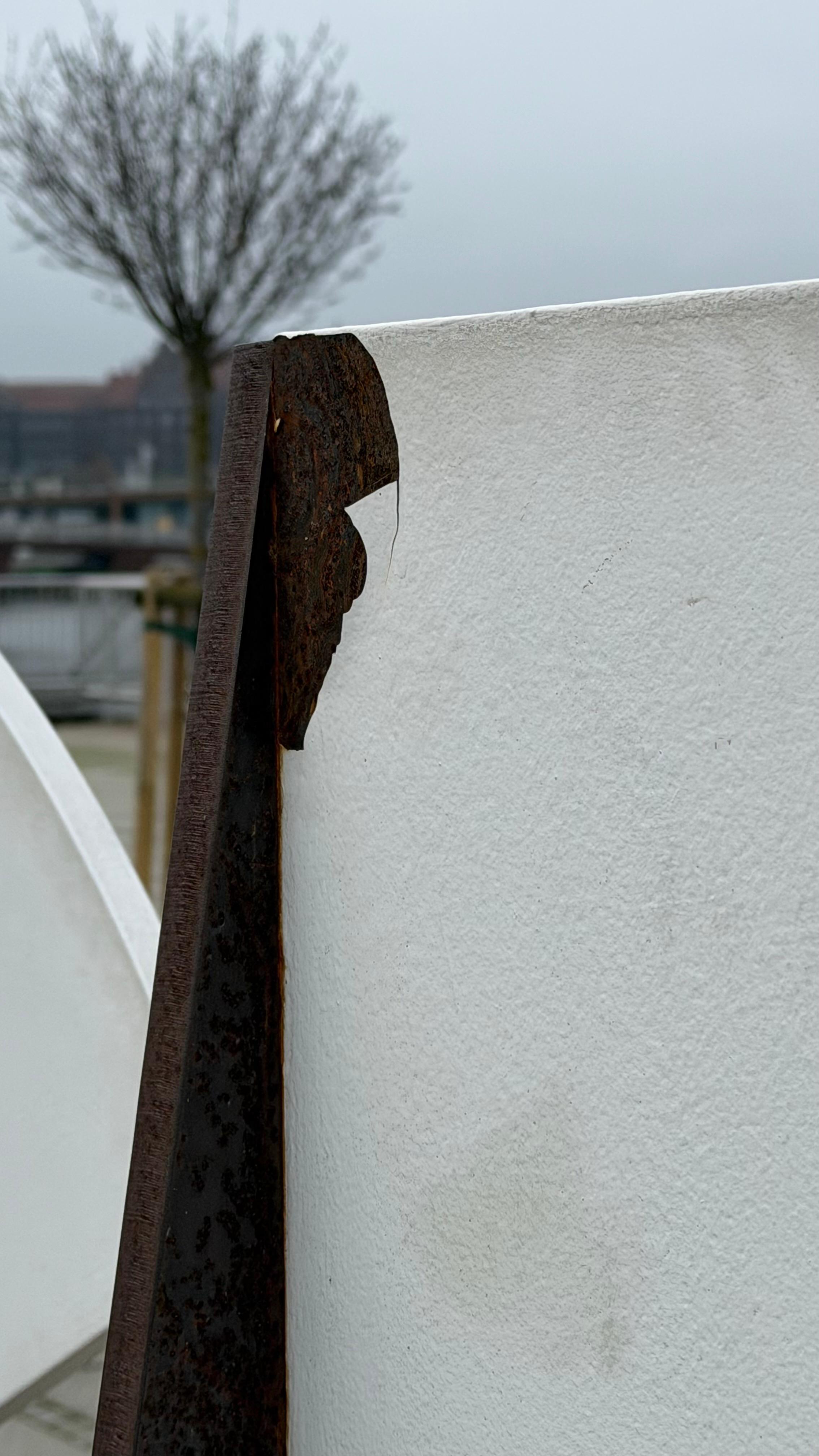 Jako autor tego projektu SBO z niepokojem patrzę na aktualny stan techniczny instalacji, która znajduje się na Łasztowni od prawie 7 lat i przez ten czas nie była jeszcze w żaden sposób “odświeżana” . Napis ma liczne i poważne usterki. Białe powierzchnie liter pokryte są odpryskami farby oraz brunatnymi zaciekami rdzy, która przebija przez powłokę malarską i spływa po bokach konstrukcji. Stalowe elementy nośne wykazują punktowe korozję, miejscami z ubytkami materiału. Na siedziskach ławek zintegrowanych z instalacją widoczne są odpadające fragmenty drewnianych elementów pozostawiając ostre, niezabezpieczone krawędzie, które mogą stanowić realne zagrożenie dla zdrowia użytkowników, w szczególności dzieci.