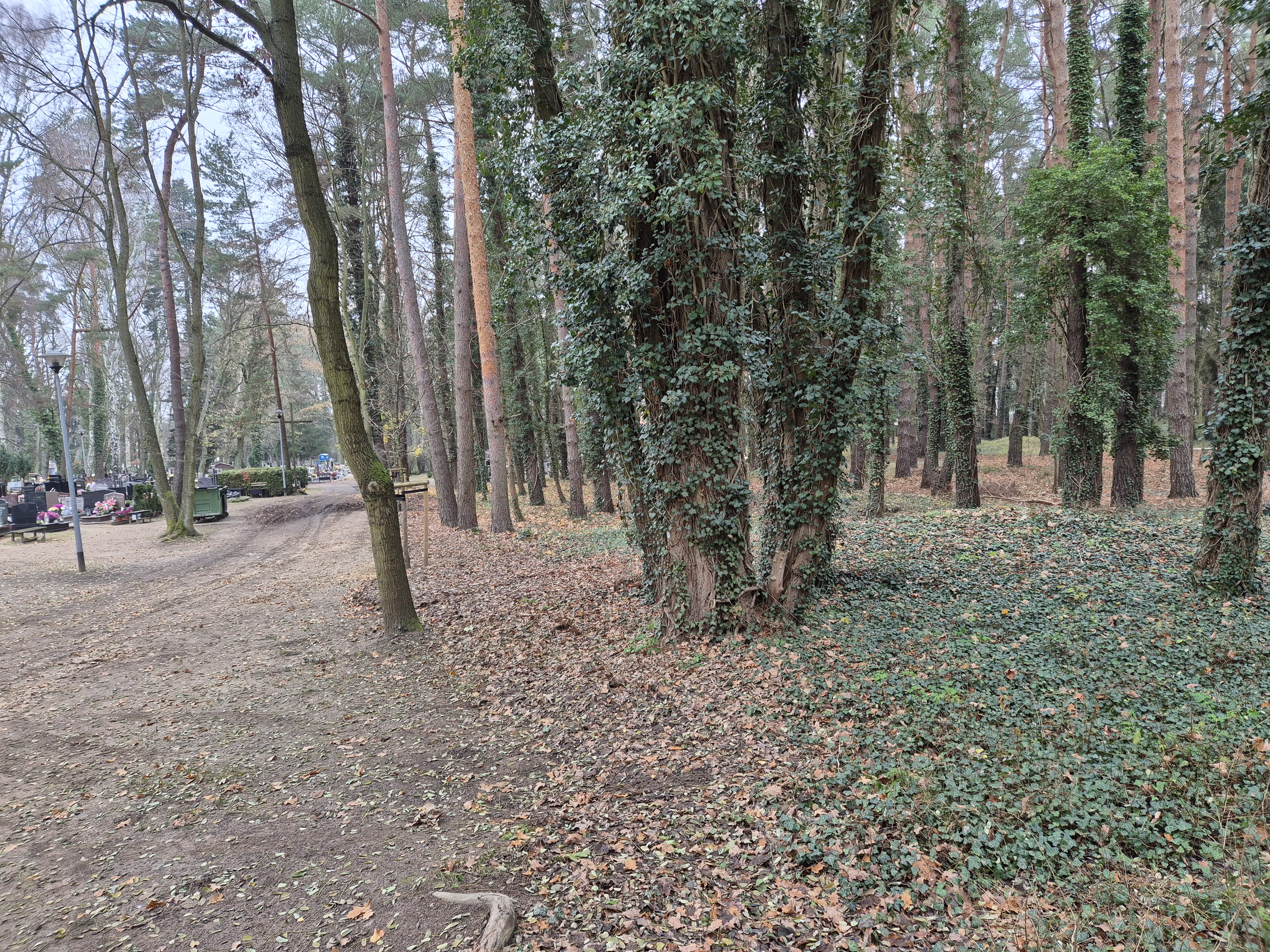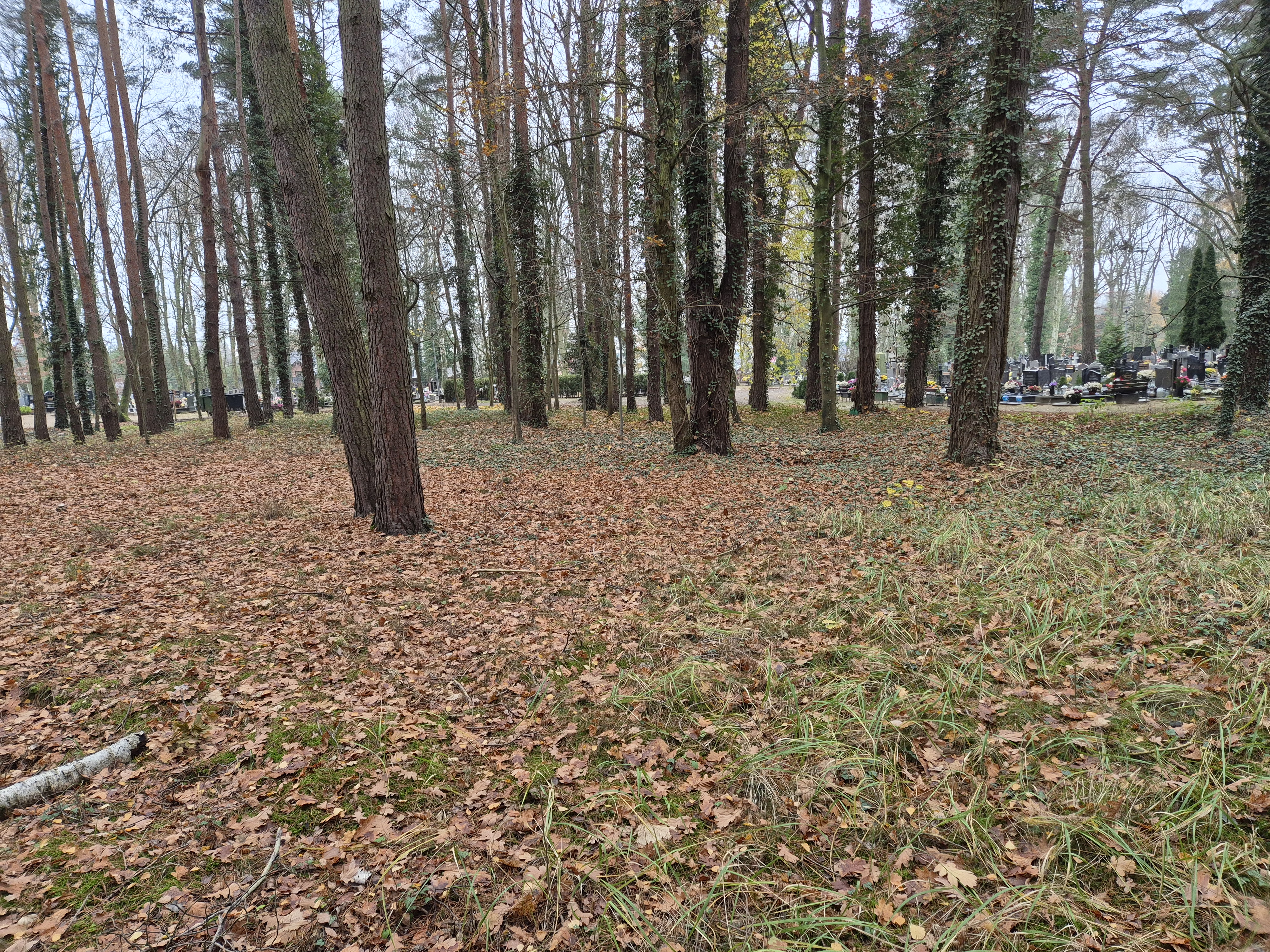 Załączam zrzut ekranu z naniesionym na kolor czerwony terenem niezagospodarowanym w obrębie cmentarza oraz dokumentację fotograficzną tego niezagospodarowanego miejsca.