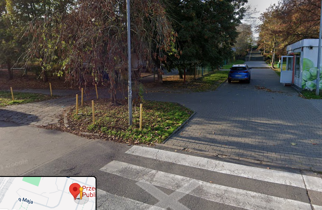 W tej lokalizacji, na przeciwnej stronie, stoją betonowe kopuły pomalowane jak jajka sadzone, które, jak zauważają mieszkańcy, pomagają w ograniczeniu niebezpiecznych manewrów samochodów. Proszę rozważyć możliwość postawienia podobnych barier lub innych rozwiązań, które zabezpieczą ten odcinek chodnika i przejścia dla pieszych. Uważam, że takie działania mogłyby znacznie poprawić bezpieczeństwo dzieci oraz osób korzystających z tego odcinka.