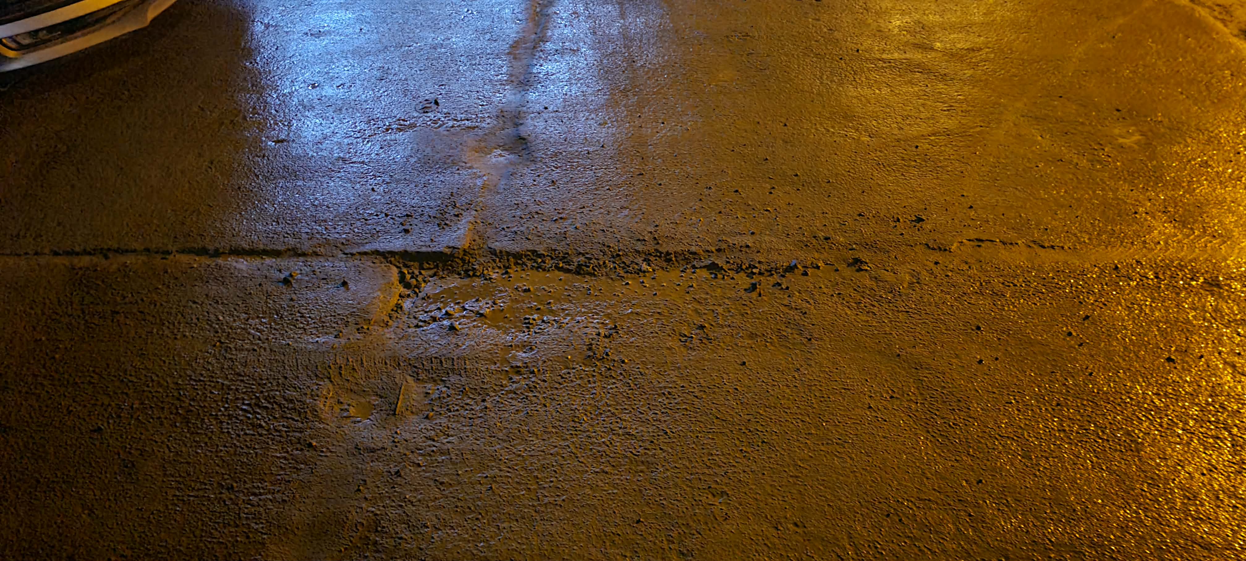 Z dokumentacji fotograficznej przekazanej przez mieszkańców oraz z wcześniejszego pisma z dnia 09.12.2025 r. wynika, że nawierzchnia: została odtworzona z płyt żelbetowych z 1972 r., posiada liczne pęknięcia, wyszczerbienia i ubytki, wykazuje nierówności powodujące uskoki między płytami, ale przede wszystkim nie zapewnia prawidłowego spływu wód opadowych do wpustów kanalizacji deszczowej.